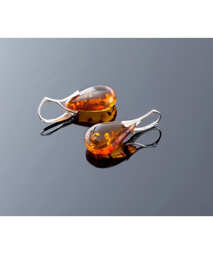 Classic style amber earrings are made of droped Baltic amber pieces. Excellent style accent for women, who appreciate high quality and subtlety. These cognac amber earrings combined with 925 sterling silver.