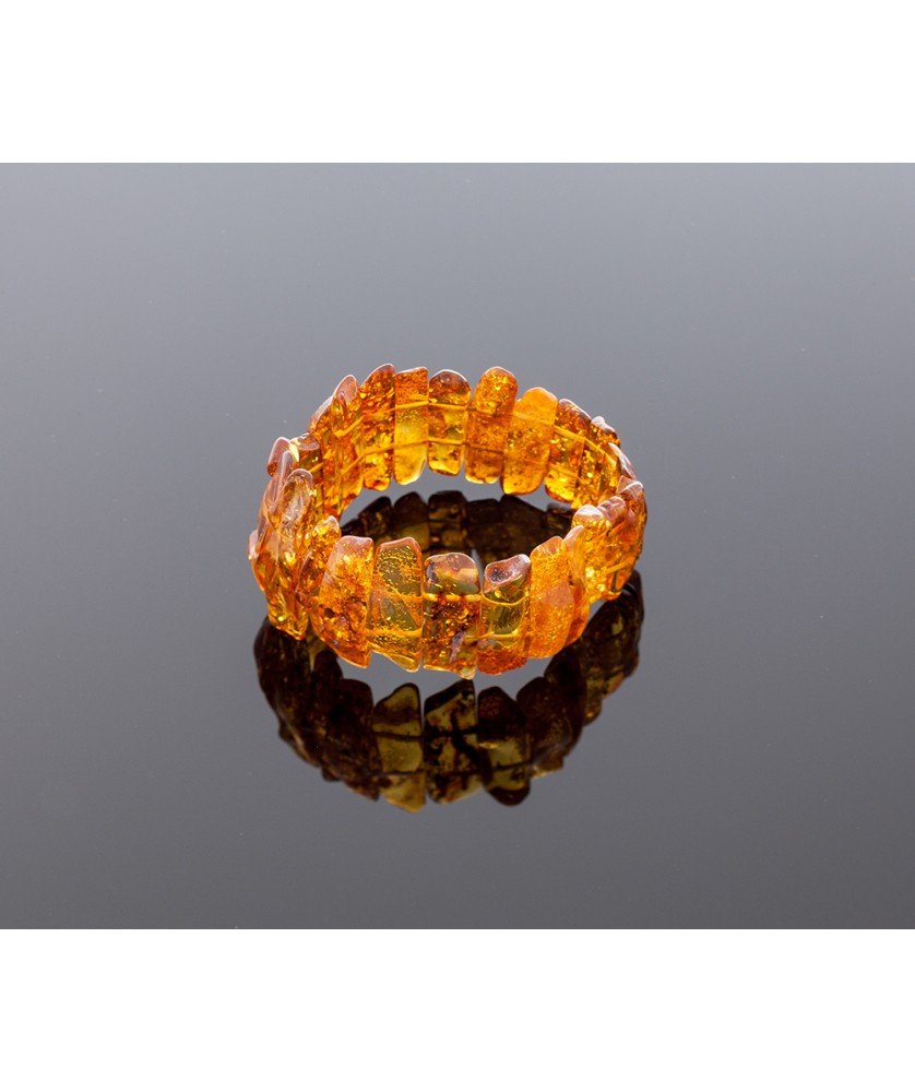 This elegant amber bracelet is made of irregular parts of natural Baltic amber, shining with warm shades of honey. Pleasant, lightweight and very beautiful Baltic amber bracelet is radiant with energy and peace to those who wear it. Eye catching bracelet is on the stretch.