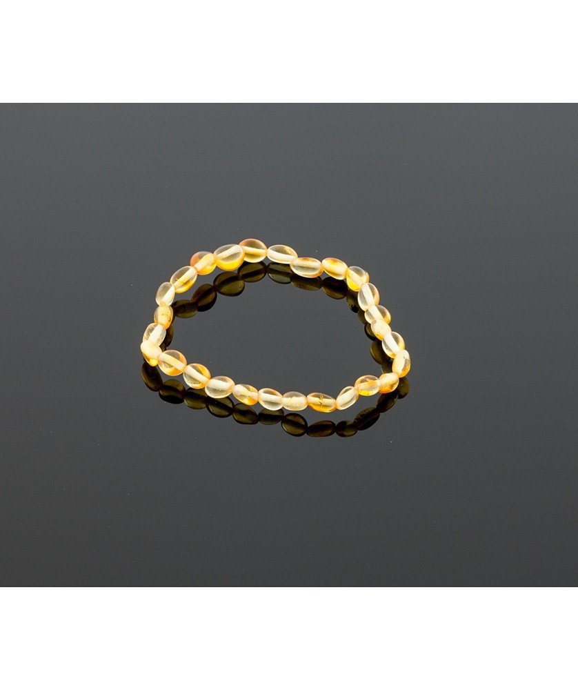 Adult amber bracelet is made of lemon color olive amber beads. This transparent bracelet is on the stretch. The length of the bracelet is ~ 19 cm. The weight of the bracelet is ~ 2,60 gr.