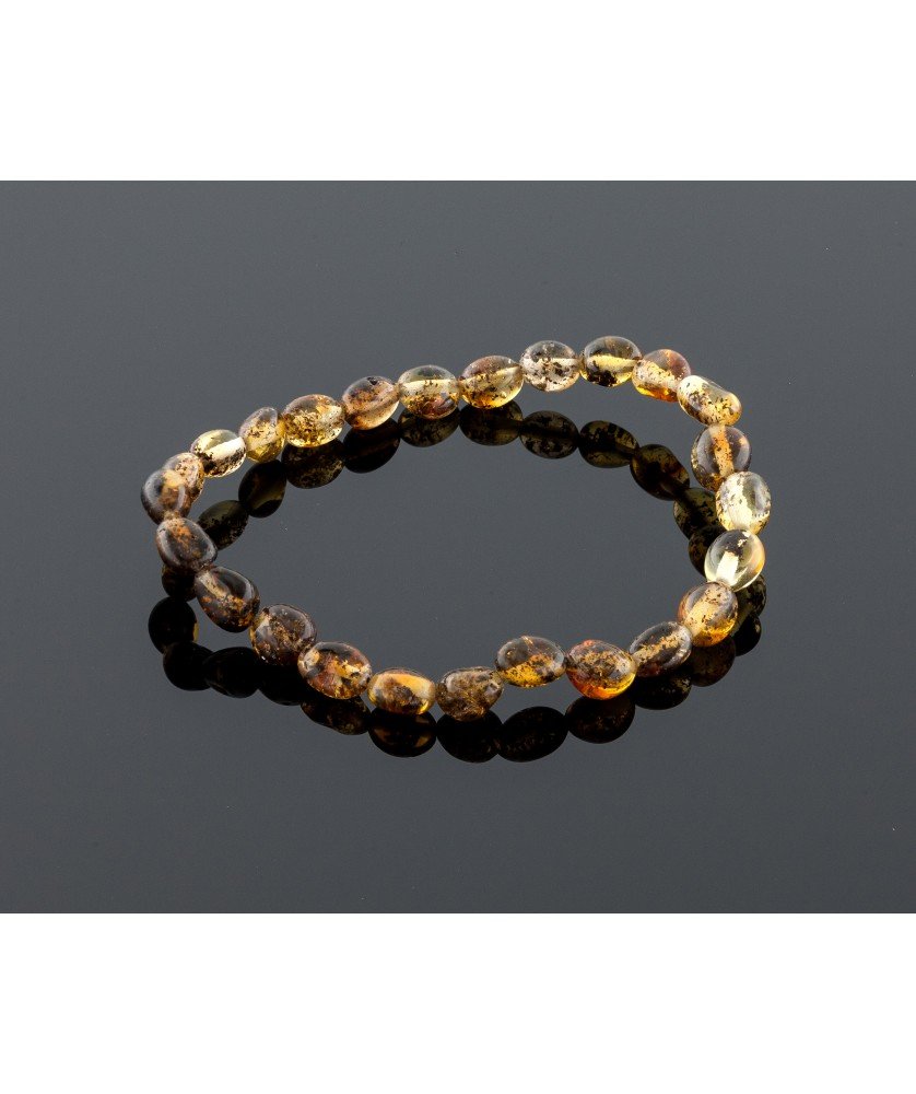 Adult amber bracelet is made of dark translucent black spotted olive amber beads. Black spotted colors perfectly combine with each other. This bracelet is made on the stretch. The length of the bracelet is ~ 19 cm. The weight of the bracelet is ~ 3,1 gr.