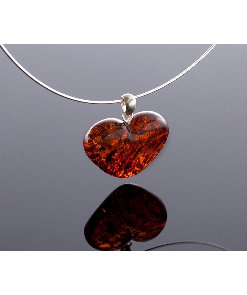 The heart shaped amber pendant is handmade. The amber heart is made from natural Baltic amber. The bright cognac color gives the pendant exclusivity. The heart pendant combined with 925 sterling silver.