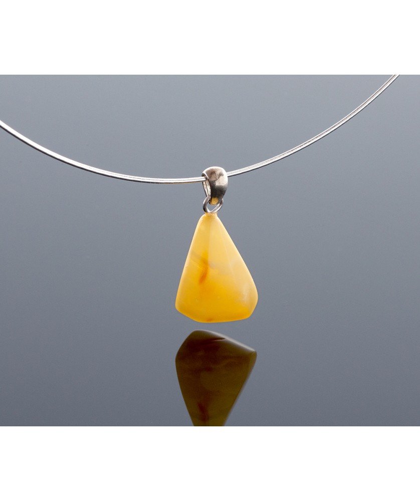 The silver opaque amber pendant is handmade. The amber pendant is made from natural Baltic amber. Natural color amber has its own unique writing. This pendant combined with 925 sterling silver.