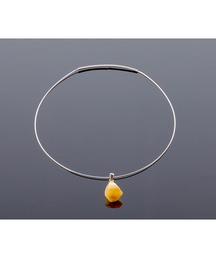 Silver opaque amber pendant