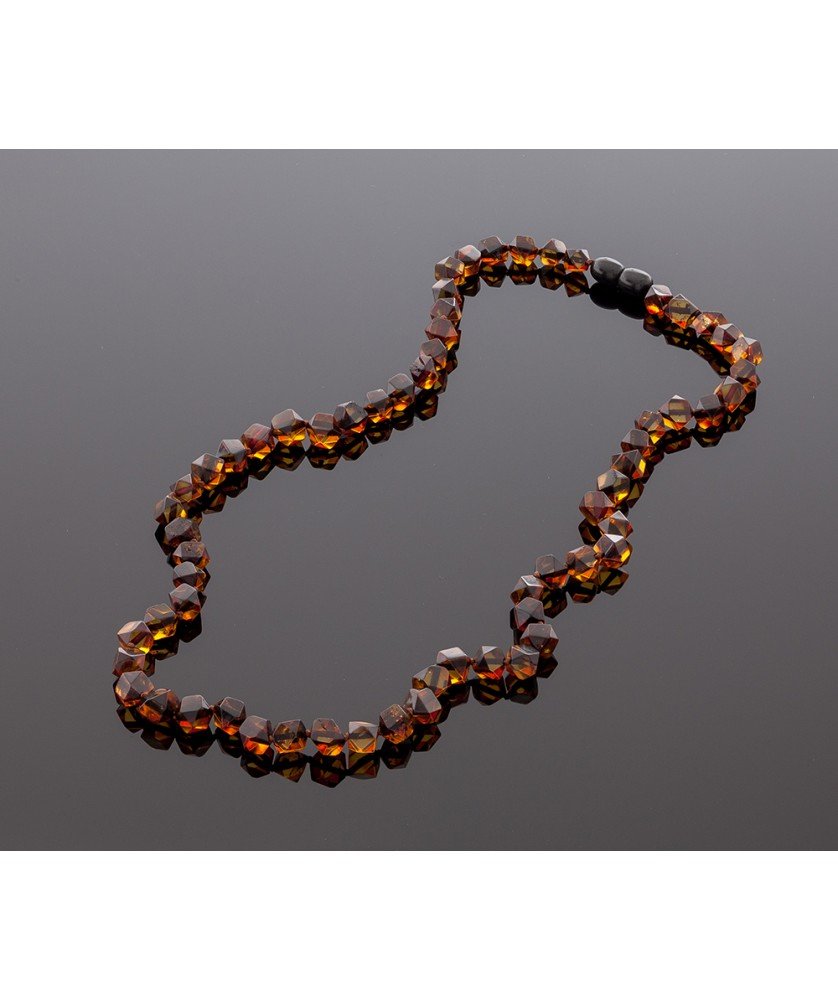 Gorgeous faceted amber necklace is made of faceted handmade stylish amber beads. Each of the diamond component provides a sense of luxury for a Lady. Pleasant, lightweight and absolutely magnificent Baltic amber necklace is radiant with energy and harmony to those who wear it. This amber processing technique gives amber blackish green shade. Amber jewelry looks unique and amazing. Perfectly combined with the bracelet of the same style. There is a knot between each amber bead.