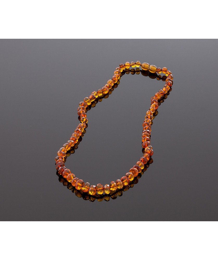 Modern faceted amber necklace is made of faceted handmade tablets. Each of the diamond component provides a sense of luxury for a Lady. Pleasant, lightweight and absolutely magnificent Baltic amber necklace is radiant with energy and harmony to those who wear it. This amber processing technique gives amber an amazing shade. Amber jewelry looks unique and amazing. There is a knot between each amber bead.