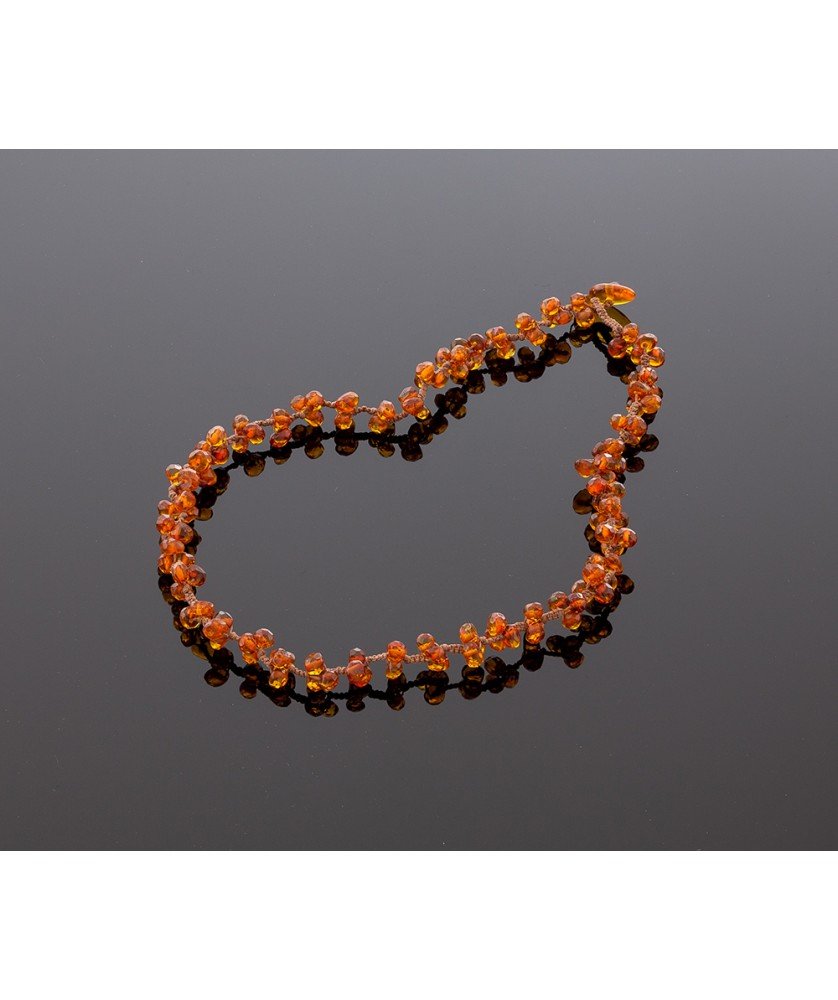 Necklace is made partly of small faceted amber. Carefully hand braided amber necklace. Little cognac amber pieces are perfectly lined up and braided. Each of the diamond component provides a sense of luxury for a Lady. Pleasant, lightweight and absolutely magnificent Baltic amber necklace is radiant with energy and harmony to those who wear it. This amber processing technique gives amber an amazing shade. Amber jewelry looks unique and amazing. Perfectly combined with the bracelet of the same style.