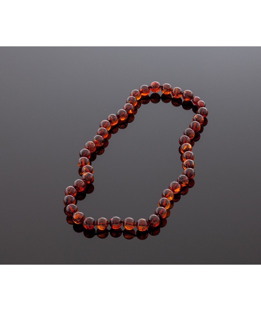 Luxury amber necklace is made of round shape amber beads. Cognac amber beads are made from natural high quality Baltic amber. Carefully polished and softly round Baltic amber beads lay comfortably against the skin. This allows maximum skin contact and gives added comfort to you. These wonderful cognac amber beads containing solar energy and the sunrise light manifest the valuable and important properties of this organic mineral.The exclusive design is suitable for different styles. There is a knot between each amber bead.