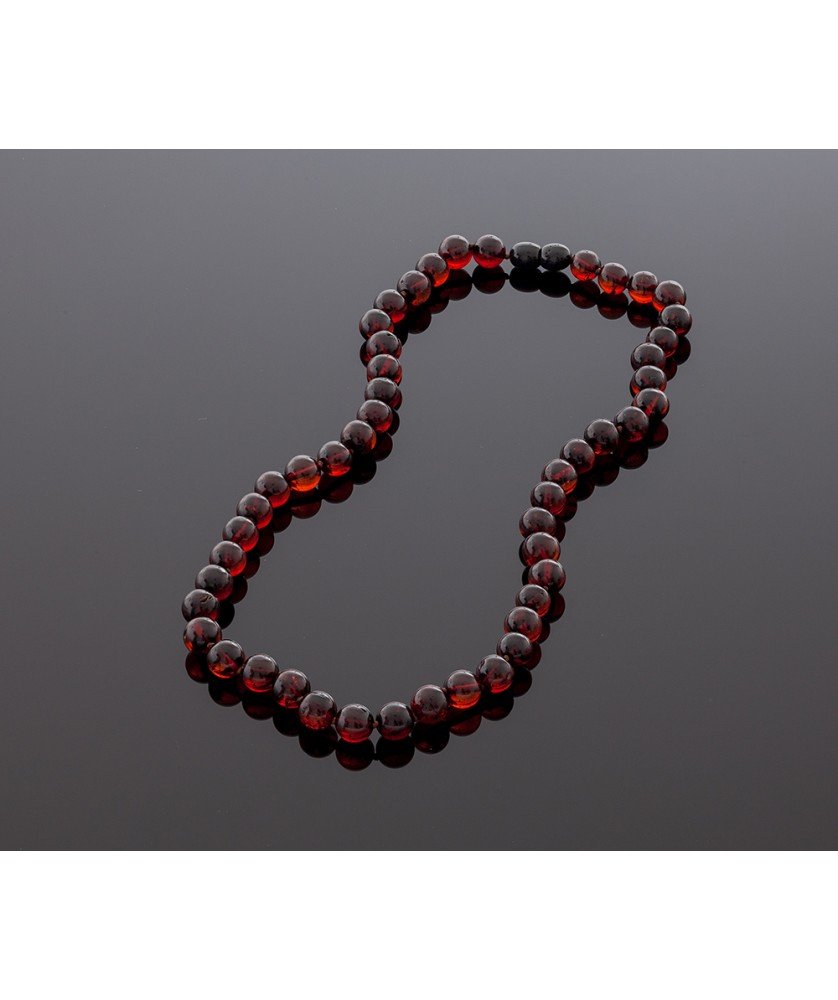 Luxury amber necklace is made of round shape amber beads. Cherry amber beads are made from natural high quality Baltic amber. Carefully polished and softly round Baltic amber beads lay comfortably against the skin. This allows maximum skin contact and gives added comfort to you. These wonderful cherry amber beads containing solar energy and the sunrise light manifest the valuable and important properties of this organic mineral. The exclusive design is suitable for different styles. There is a knot between each amber bead.