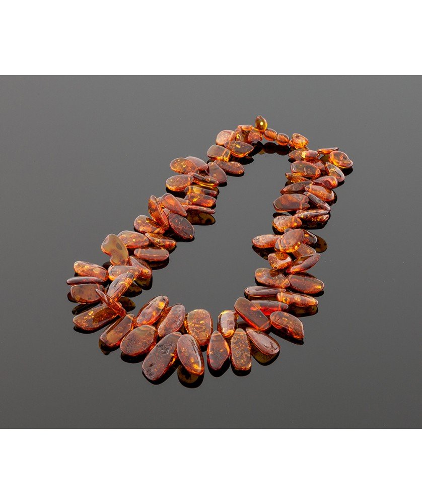 Baltic amber necklace is made of small Baltic amber leaflets. Cognac color, freeforms leaflets perfectly combine with each other. Closure is made of plastic. The length of the necklace is ~ 55 cm. The weight of the necklace is ~ 61 gr.