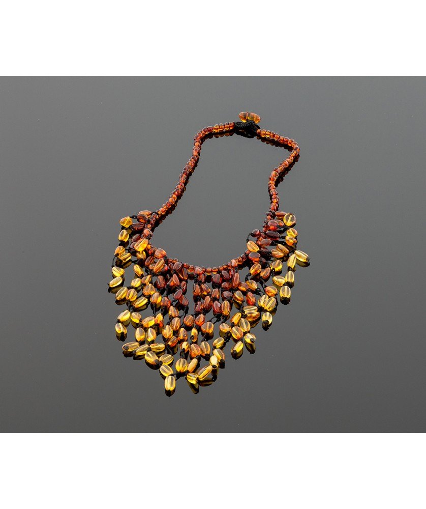 Baltic amber necklace is made of handmade Baltic amber baroque and olive shapes. Multicolored necklace gives the sense of exclusivity. Closure is made of amber. The length of the necklace is ~ 40 cm. The weight of the necklace is ~ 27 gr.