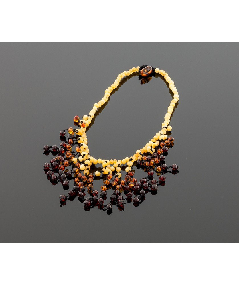 Baltic amber necklace is made of handmade Baltic amber baroque shapes. Multicolored necklace gives the sense of exclusivity. Closure is made of amber. The length of the necklace is ~ 40 cm. The weight of the necklace is ~ 23 gr.