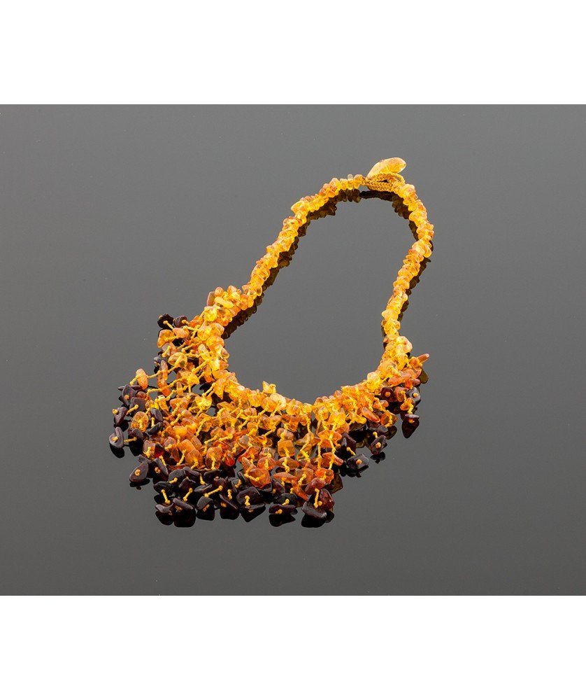 Carefully hand braided amber necklace. Honey, cognac and cherry colors of small amber pieces are perfectly lined up and braided. Closure is made of amber. The length of the necklace is ~ 40 cm. The weight of the necklace is ~ 33 gr.