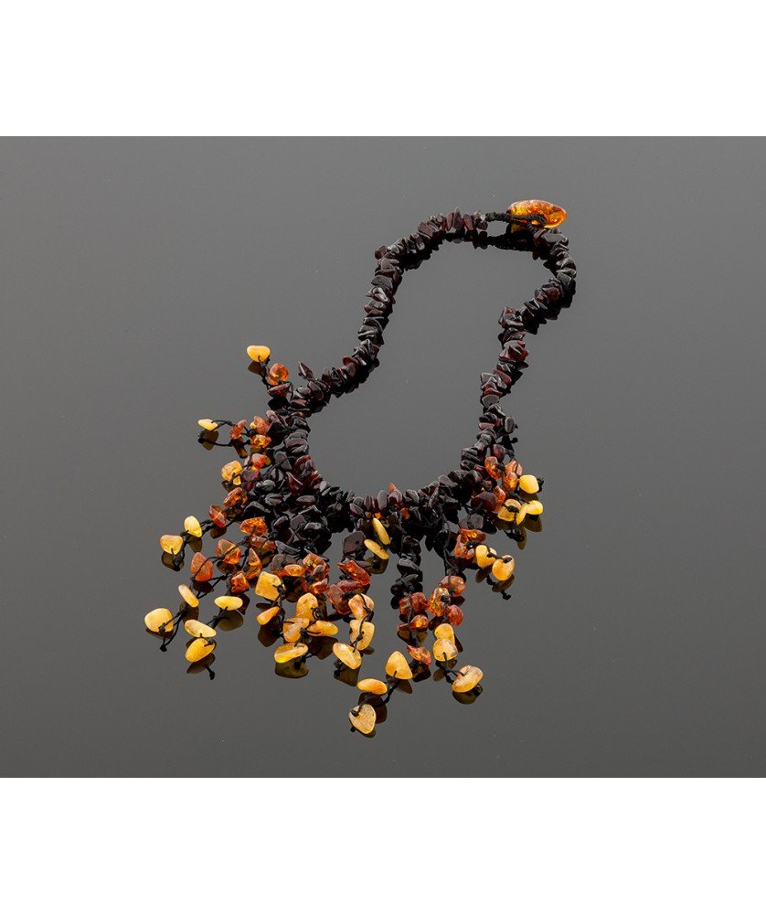 Carefully hand braided amber necklace. Cognac, dark cognac and yellow colors of small amber pieces are perfectly lined up and braided. Closure is made of amber. The length of the necklace is ~ 40 cm. The weight of the necklace is ~ 22 gr.