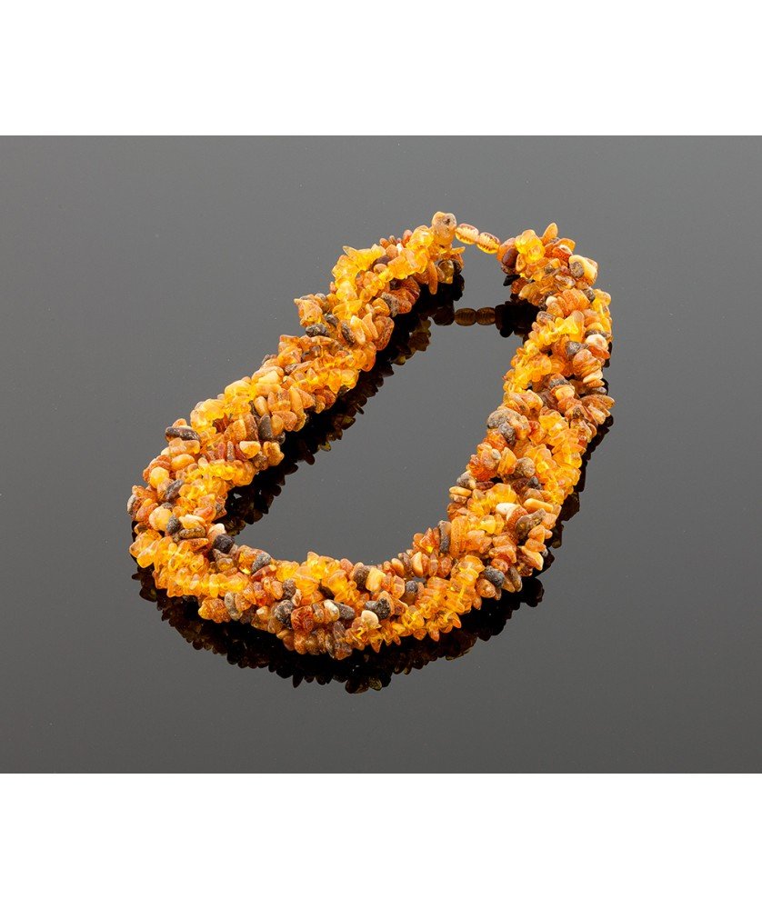 Carefully hand braided amber necklace. Multicolored amber pieces are perfectly lined up and braided. Closure is made of plastic. The length of the necklace is ~ 58 cm. The weight of the necklace is ~ 120 gr.