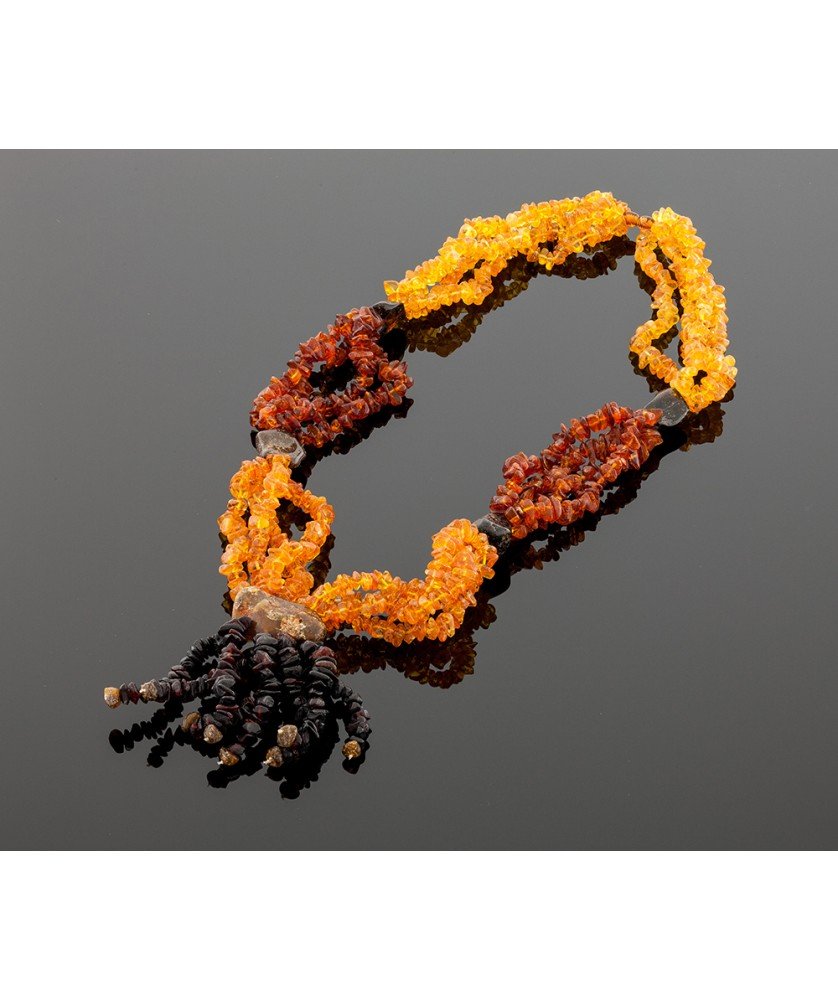 Baltic amber necklace is made of bright cognac and honey colored Baltic amber chips. Small parts of baltic amber perfectly combine with each other. There is no knot between each bead. Closure is made of plastic. The length of the necklace is ~ 78 cm. The weight of the necklace is ~ 131 gr.