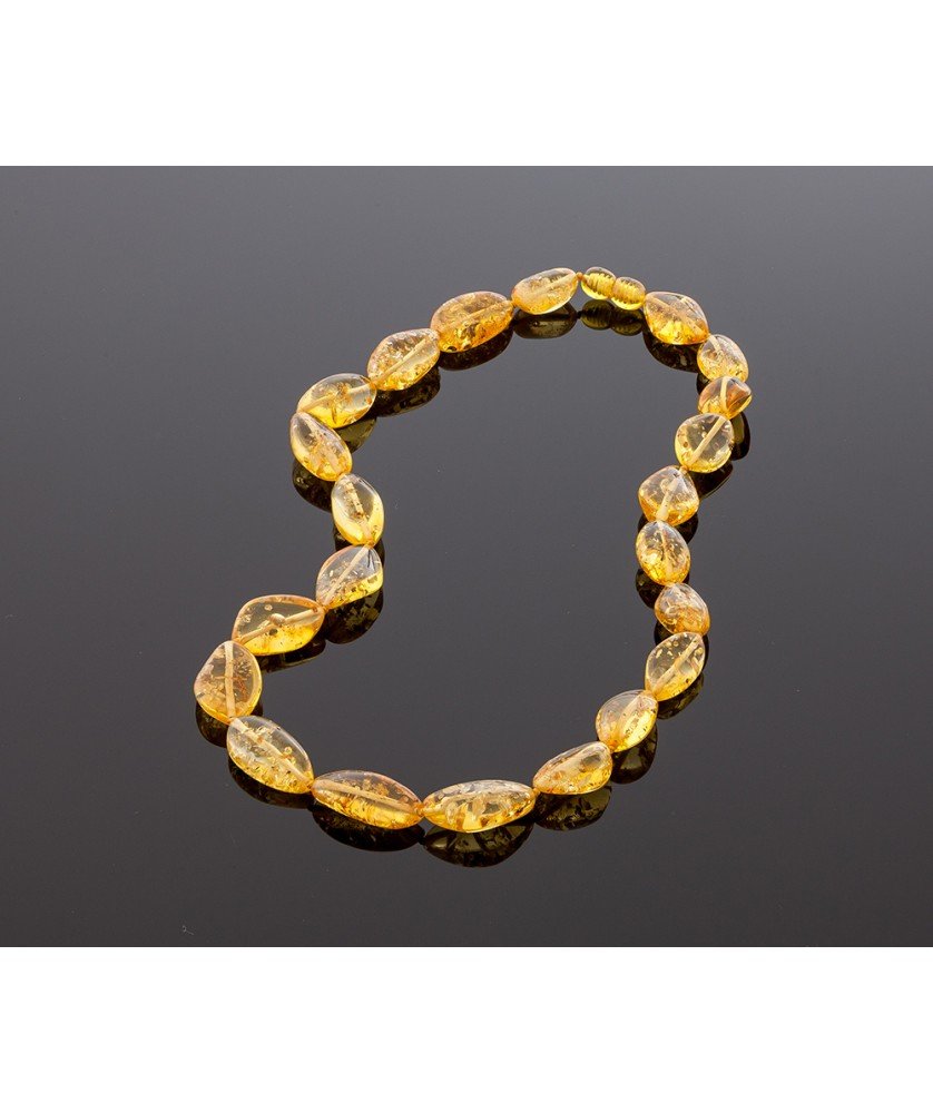 Classic style amber necklace is made of honey amber stylish beads. Pleasant, lightweight and very beautiful Baltic amber necklace is radiant with energy and harmony to those who wear it. The unique and amazing property of natural amber is that it offers a natural relief of pain. There is a knot between each amber bead. Closure is made of plastic. The length of the necklace is ~ 47 cm. The weight of the necklace is ~ 25,5 gr.