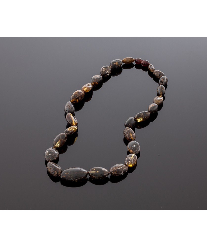 Classic style amber necklace is made of natural amber stylish beads. Pleasant, lightweight and very beautiful Baltic amber necklace is radiant with energy and harmony to those who wear it. The unique and amazing property of natural amber is that it offers a natural relief of pain. Anti-inflammatory properties make it ideal natural homeopathic product for adults. There is a knot between each amber bead. Closure is made of plastic. The length of the necklace is ~ 50 cm. The weight of the necklace is ~ 29 gr.