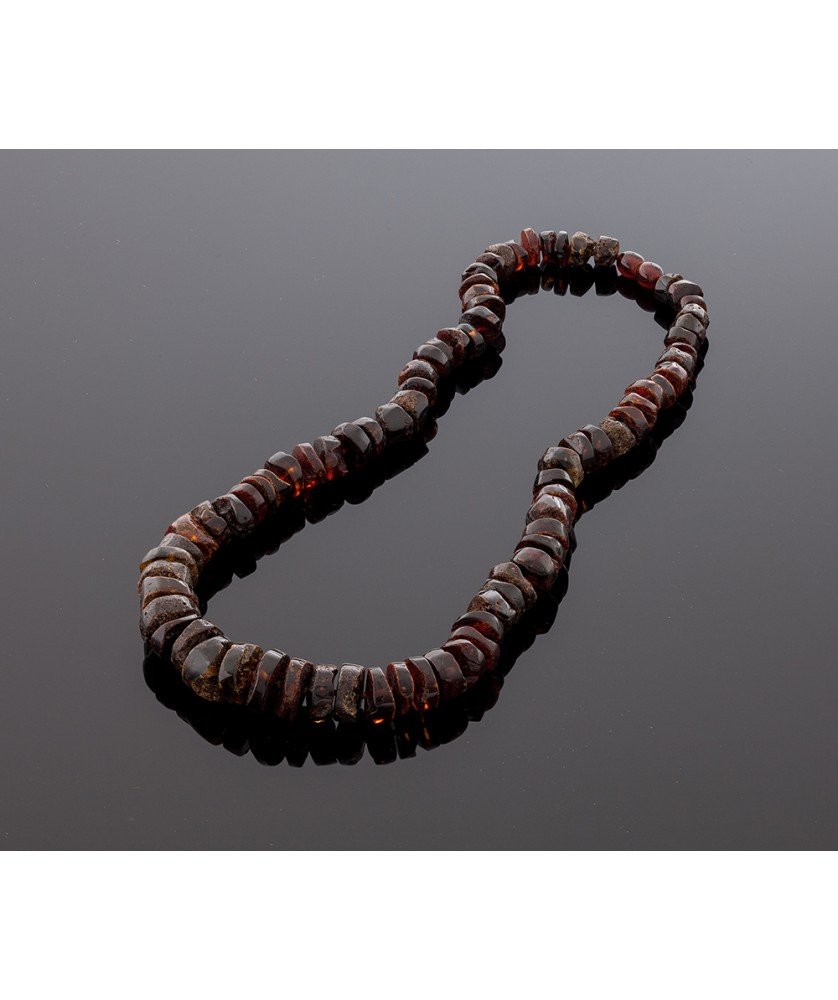 Stylish handmade amber necklace consists of dark Baltic amber tablets. This dark color necklace gives subtle classical sense. Freeform parts perfectly combine with each other. Pleasant and very beautiful Baltic amber necklace is radiant with energy and peace to those who wear it. Also suitable for Gentelmen. Closure is made of plastic. The length of the necklace is ~ 50 cm. The weight of the necklace is ~ 44,6 gr. The size of amber up to ~ 0,3x1,5 cm.