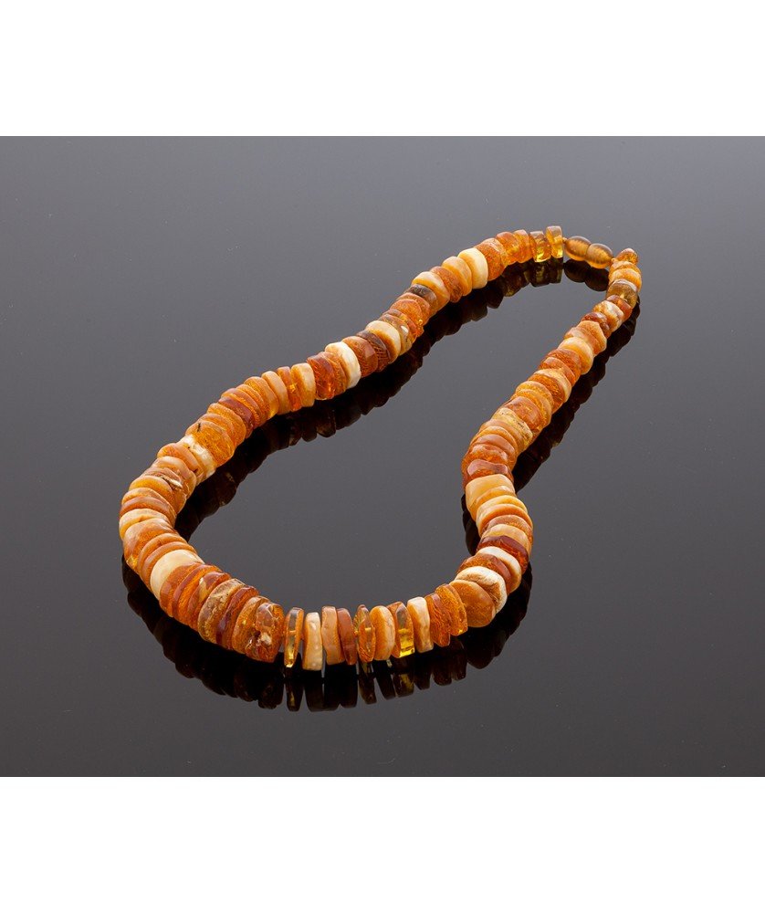 Stylish handmade amber necklace consists of Baltic amber tablets. This marvelous necklace gives subtle classical sense. Freeform parts perfectly combine with each other. Pleasant and very beautiful Baltic amber necklace is radiant with energy and peace to those who wear it. Also suitable for Gentelmen. Closure is made of plastic. The length of the necklace is ~ 50 cm. The weight of the necklace is ~ 55,3 gr. The size of amber up to ~ 0,3x1,5 cm.