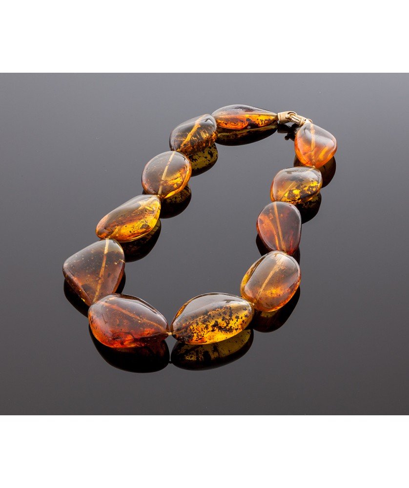 Unique amber necklace is handmade of cognac amber olives. Each piece of amber necklace has an inclusion. Pleasant and exclusive Baltic amber necklace is radiant with energy and harmony to those who wear it. The unique and amazing property of natural amber is that it offers a natural relief of pain. Anti-inflammatory properties make it ideal natural homeopathic product for adults. There is a knot between each amber bead. The pieces of amber with insects are considered the most valuable since ancient times. Amber with insects trapped in the examples are called inclusions. Plant inclusions and small forest insects are the most common types of inclusions. However, amber arthropod fauna is particularly interesting. The examples of scorpions, mites, spiders, centipedes trapped in amber are very rare.