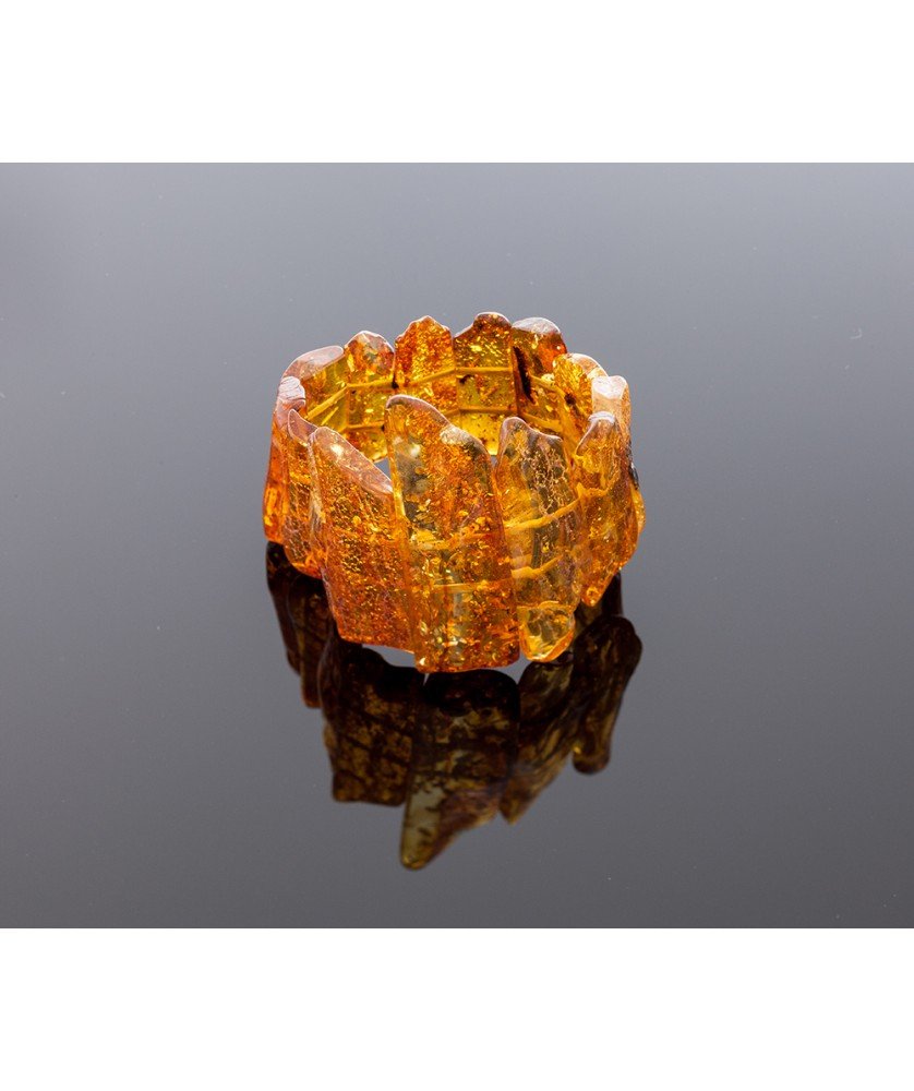 This elegant, pure amber bracelet is made of irregular parts of natural Baltic amber, shining with warm shades of honey and cognac. Eye catching bracelet is on the stretch.