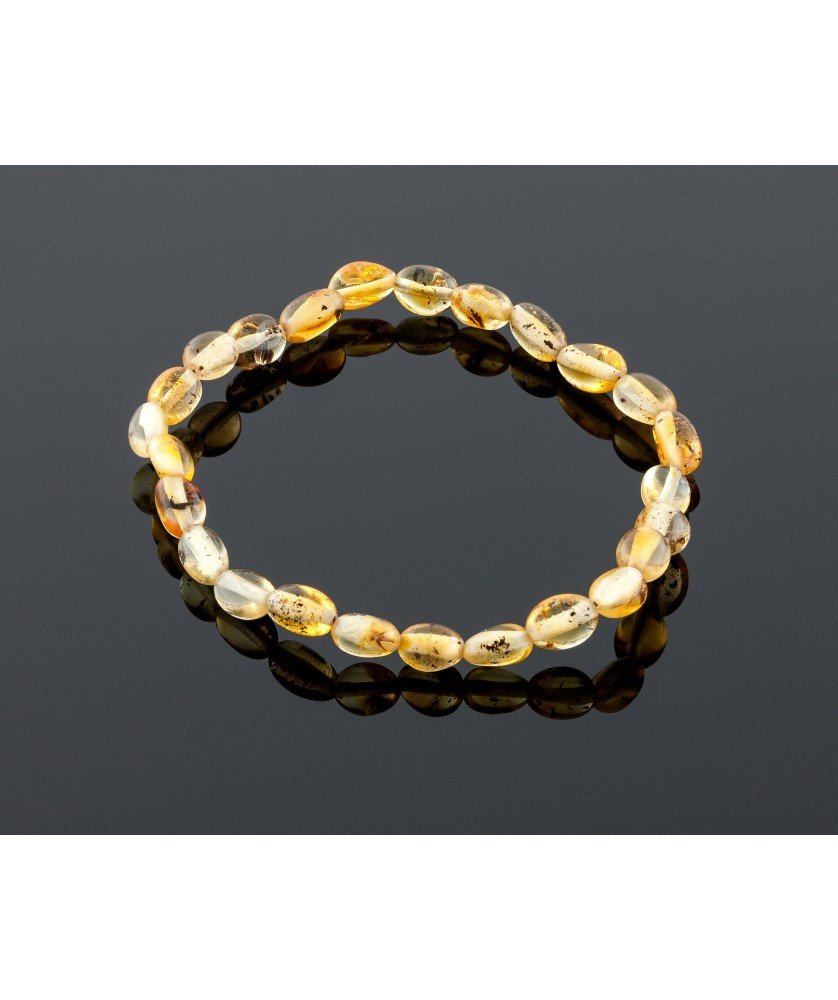 Adult amber bracelet is made of natural color olive amber beads. Light black spotted colors perfectly combine with each other. This bracelet is made on the stretch. The length of the bracelet is ~ 19 cm. The weight of the bracelet is ~ 2,7 gr.